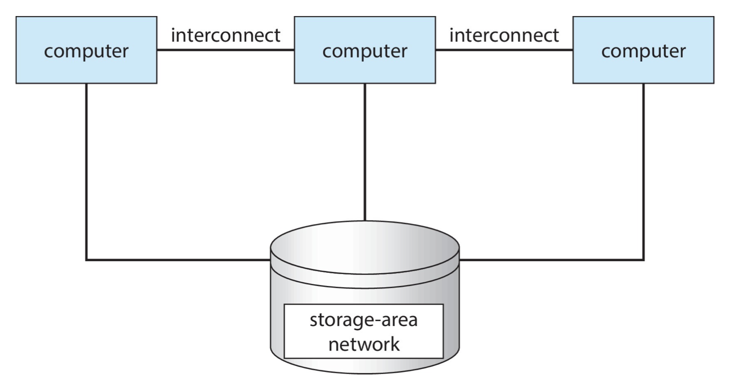- 컴퓨터들이 각각 실행하는 중에 공유메모리에 대한 충돌을 방지하고자 DLM(distributed lock manager)를 가지고 있는 클러스터 시스템도 있다.