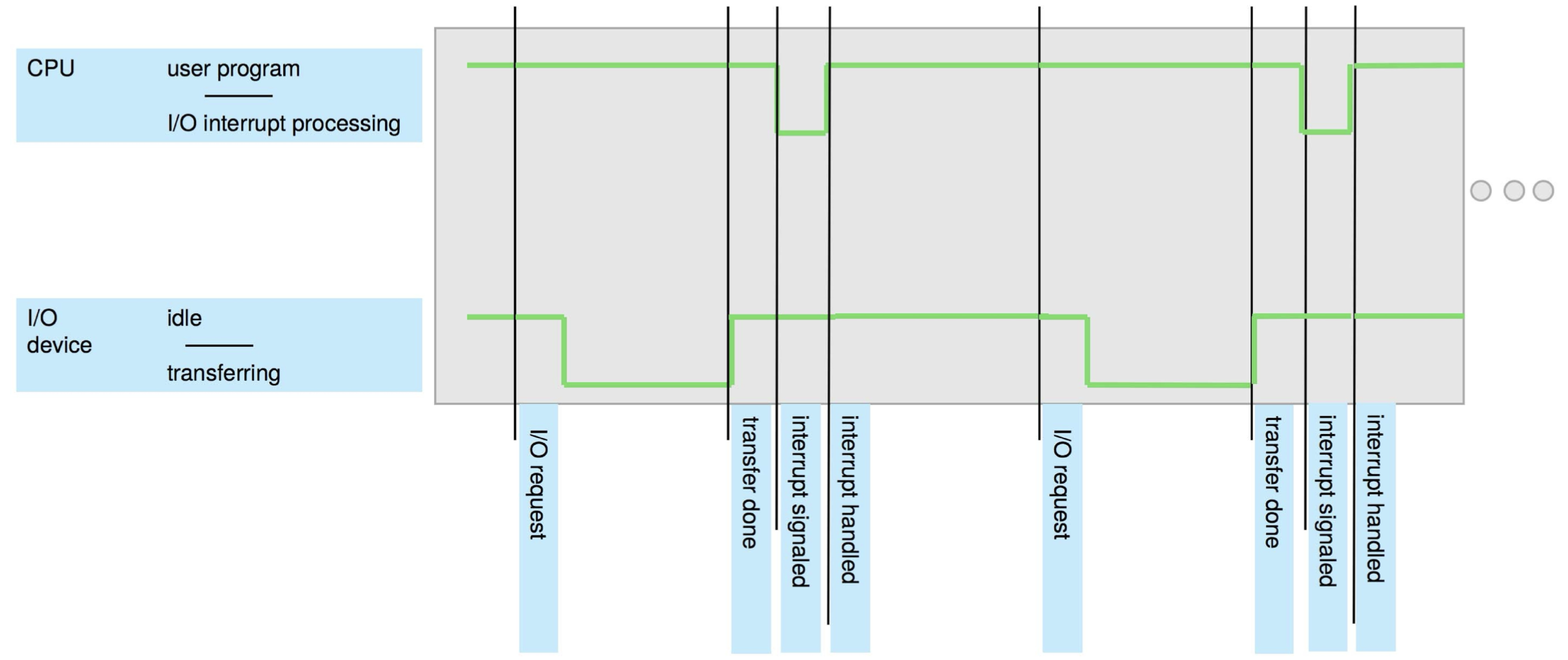 - 여기서 우리가 마우스를 움직인다면, CPU는 마우스(I/O device)에 의해 동영상의 버퍼링 작업을 그만둔다.(interrupt)