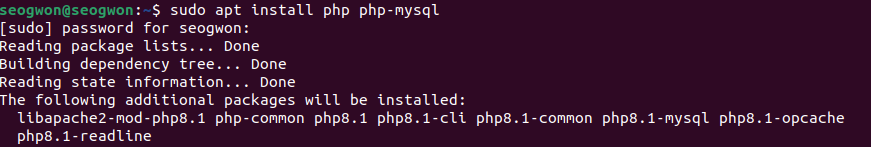 php의 설치가 성공적으로 끝났음을 확인할 수 있습니다.
