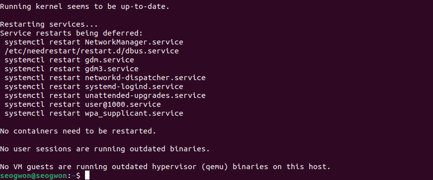 물론 최근에 apt를 업데이트, 업그레이드 했다면 굳이 할 필요는 없습니다. 하지만 저는 혹시 몰라서 무언가 설치 할 때마다 한 번씩 하는 편입니다.