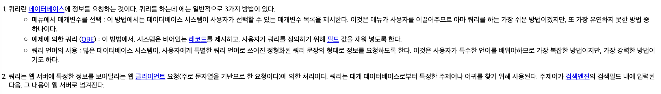 쿼리라는 말은 막상 많이 들어봤다. 하지만 모호하게 알고 있어서 막연하게 느껴져서 이번에 한번 정의를 찾아보았다.